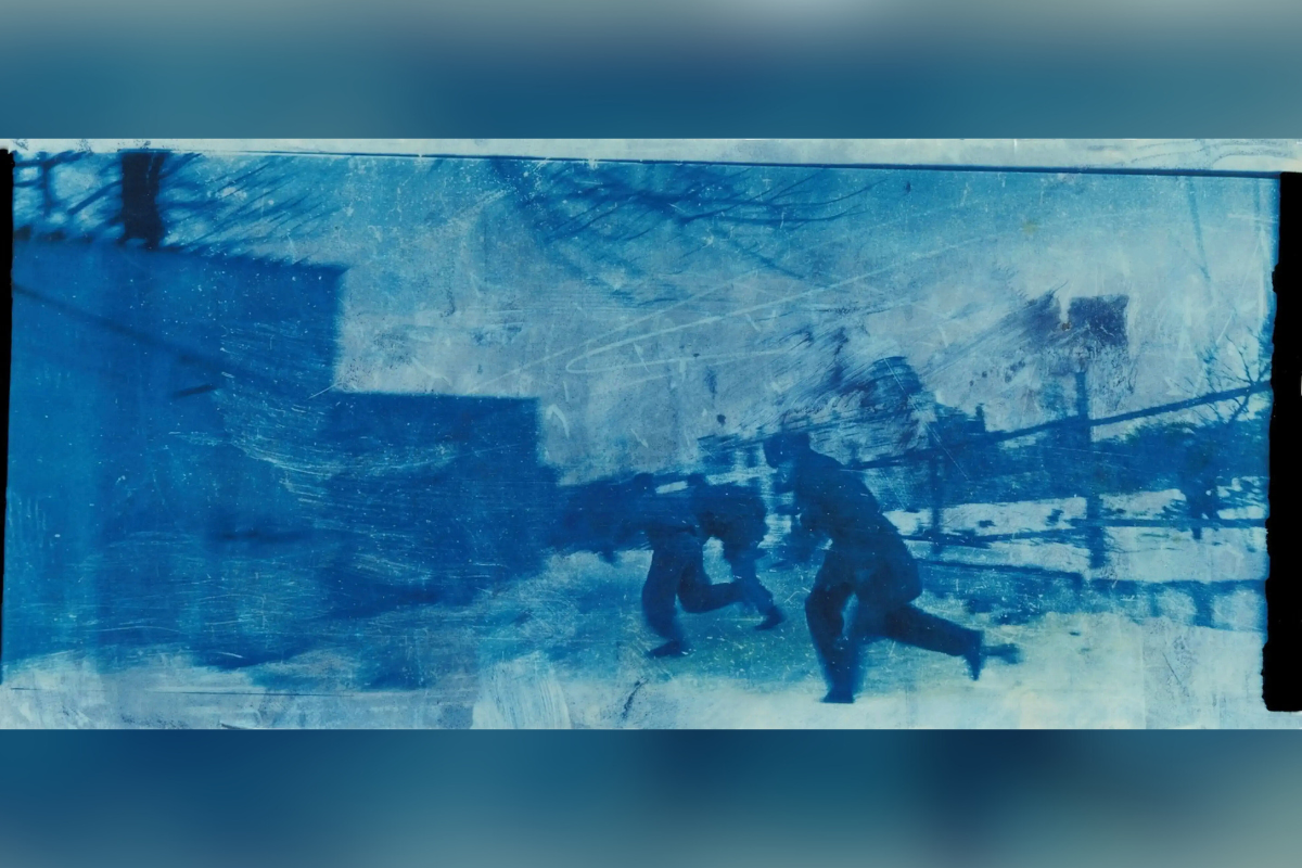 At Dusk offers wide, blue-tinted shots of Kharkiv’s streets during this time, showing people queuing for food and lying aimlessly on the street. This world resembles one destroyed by a war – a reality not unfamiliar to Boris Mikhailov. His father was enlisted in the Red Army. When the Nazis invaded, his Jewish mother got the family out on the last train out of Kharkhiv.