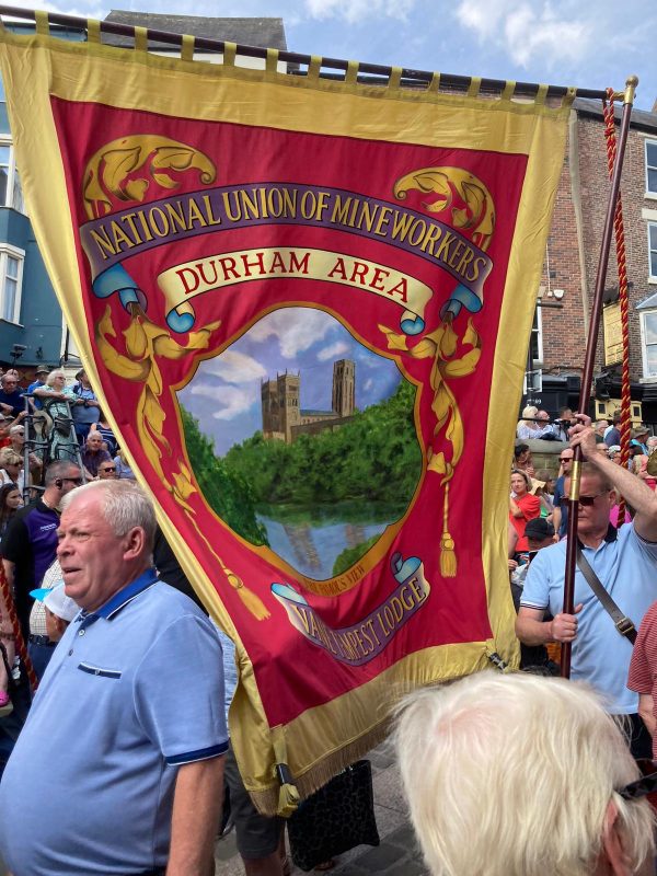 The Gala opened with the usual parade of trade union branches and mineworkers’ lodges through the cobbled streets of Durham. Although the skies were dark and grey, the city was lit up with the bright colours of trade union banners.