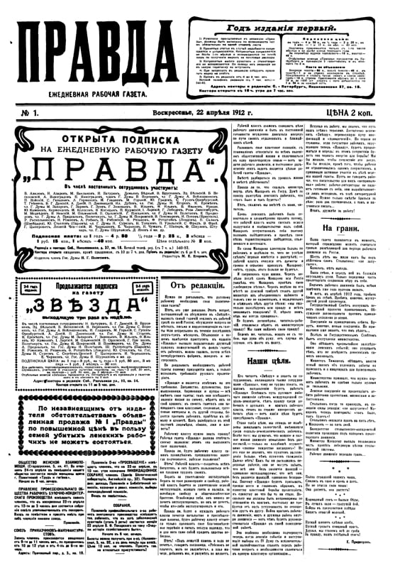 With the revival of the class struggle in 1912, the Bolsheviks, under Lenin’s initiative, were again able to produce a mass daily paper; under the name of Pravda (the ‘Truth’). It was the first legal paper, which meant it had to do battle with the censor.