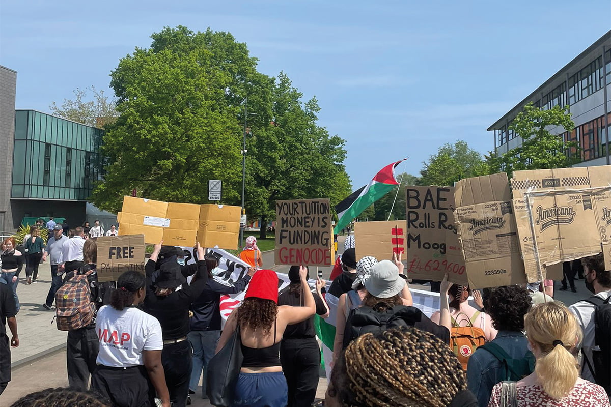 Since 1 May, student activists have organized and built an encampment on the University of Leeds (UoL) campus in protest of the university’s partnership with arms manufacturer BAE Systems, and its refusal to acknowledge the genocide in Palestine.