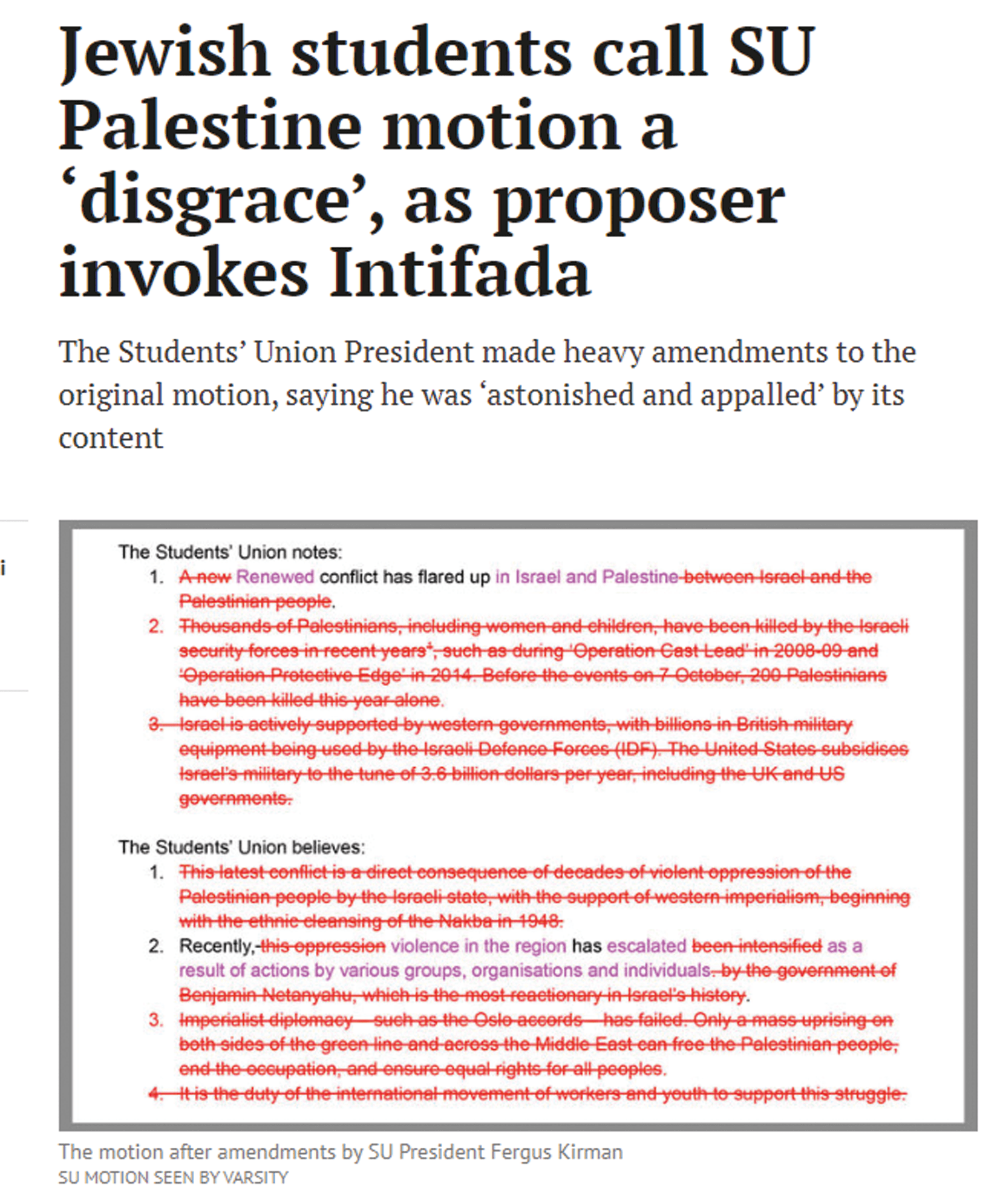 Fergus Kirman, the SU president, has now written to the government asking for an exemption to ‘free speech’ legislation so that he can suppress the motion. This is absolutely scandalous.
