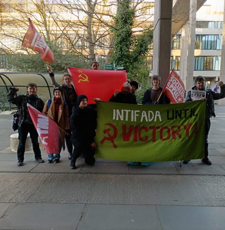 However, the student union officials did not allow the Communist Society to present a motion calling for a mass mobilisation of students against British imperialism, and against companies supplying arms to Israel.