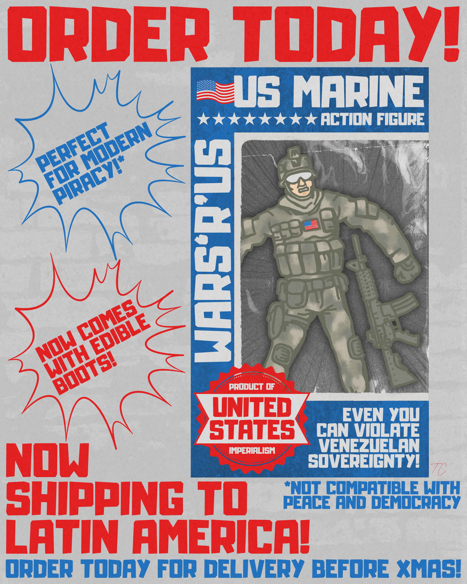 In the afternoon of 10 December, a US military helicopter took control over an oil tanker travelling from Venezuela. Not content with this act of piracy, when asked what the US was going to do with the oil it was transporting, Trump casually said “Well, we keep it, I suppose”, like a man who has found a ten dollar bill on the floor.