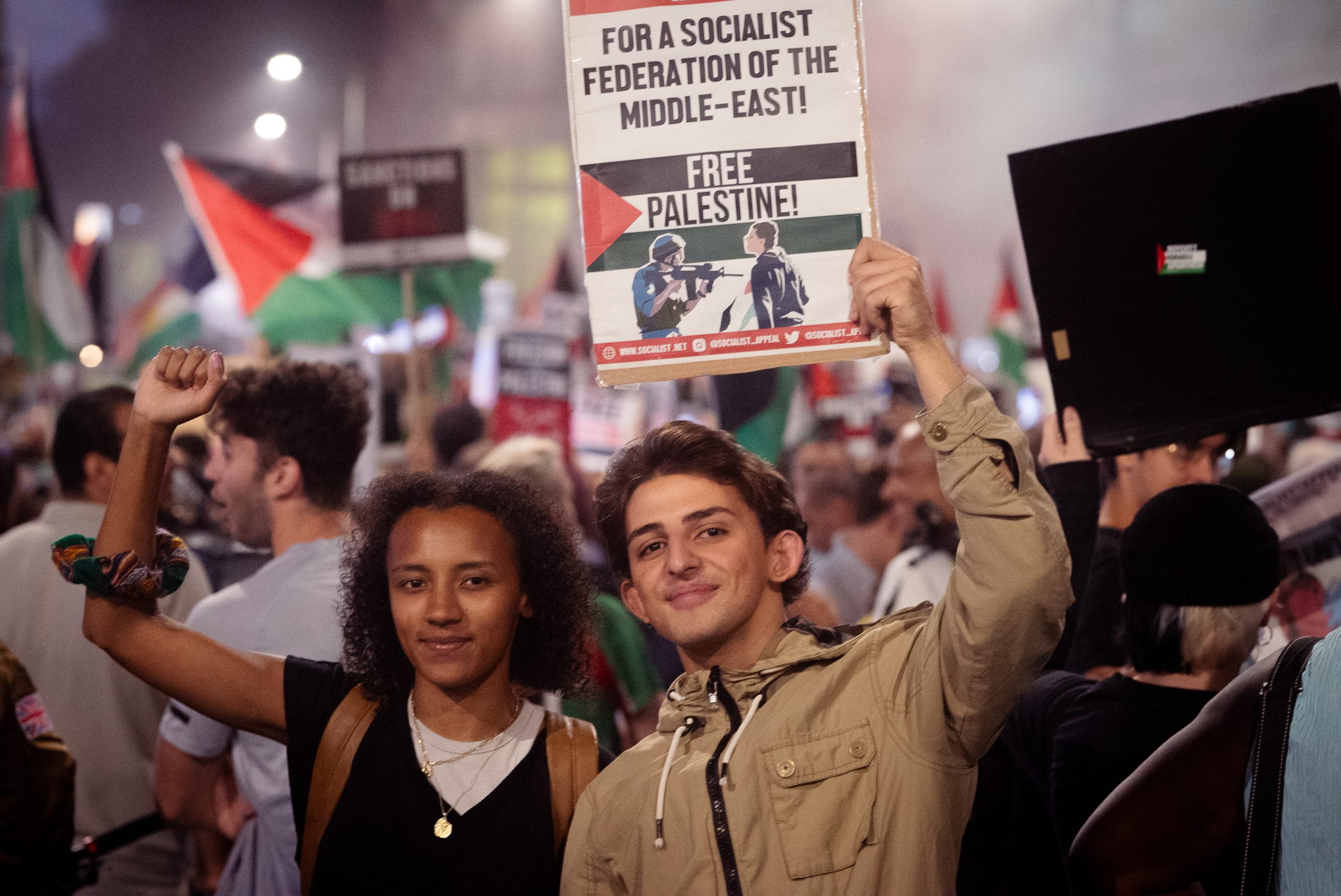 Our posters show a Palestinian flag with the slogan: ‘Intifada until victory! The fight for a free Palestine’. Intifadas are mass uprisings against the Israeli state by the Palestinians.