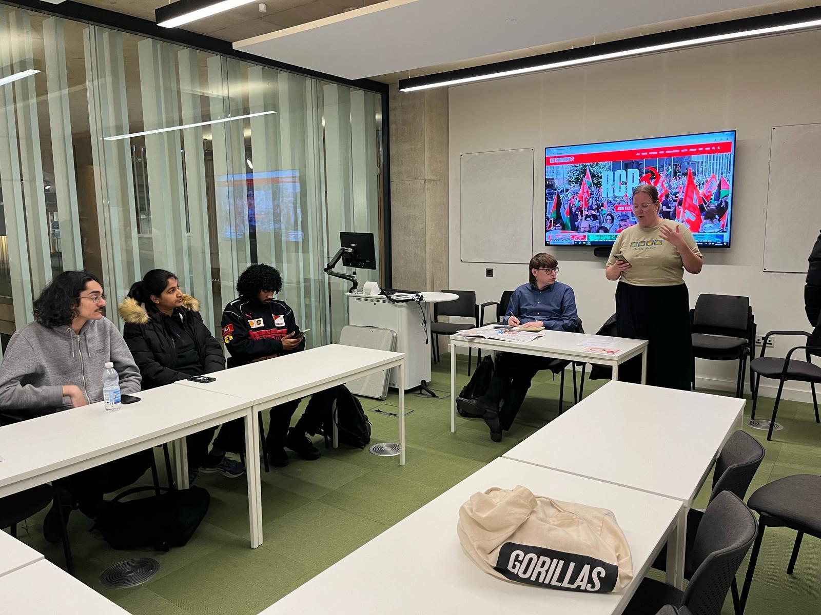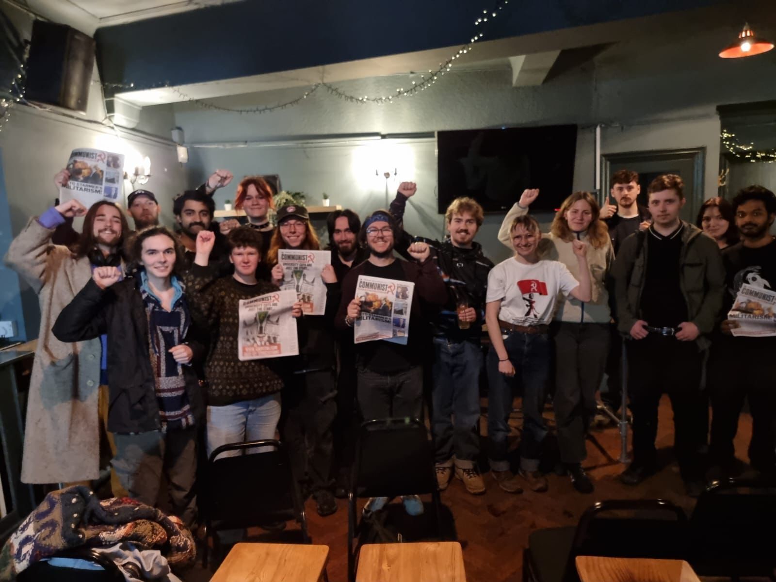 There was a tremendous collection of over £250, with some students buying £25 tickets to attend our Lenin School this weekend. After the meeting, the majority of those in attendance came to the pub to continue the discussion for several hours.