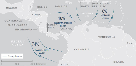 These drugs are not transported in speedboats, but rather in shipping containers and aeroplanes. Another 16 percent goes through the ‘Western Caribbean Vector’ (the Caribbean coast of Colombia). Only a mere eight percent goes through the ‘Caribbean Corridor’ (off the Venezuela coast).